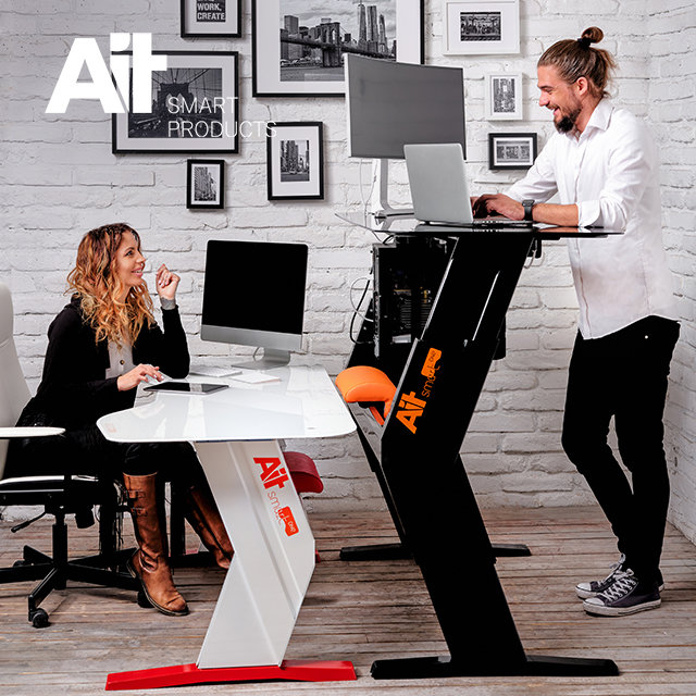 The base material of both models is wood, the desk legs however, are made of a mix of aluminum and wood. The tabletops of both Phantom1 and Smart one can be ordered to be made of wood or tempered glass.